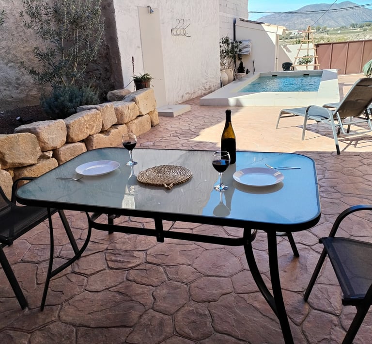 Acogedora Casa Rural con piscina y barbacoa PRIVADA. Situada en uno de los enclaves con más riqueza patrimonial de todo el noroeste murciano. La Encarnación, pedanía de Caravaca de la Cruz, ha sido asentamiento de las más antiguas civilizaciones; desde el Paleolítico hasta nuestros tiempos. Muestra de ello son La Cueva Negra y la Ermita de La Encarnación, verdaderas joyas que visitar a solo unos minutos de nuestro alojamiento.